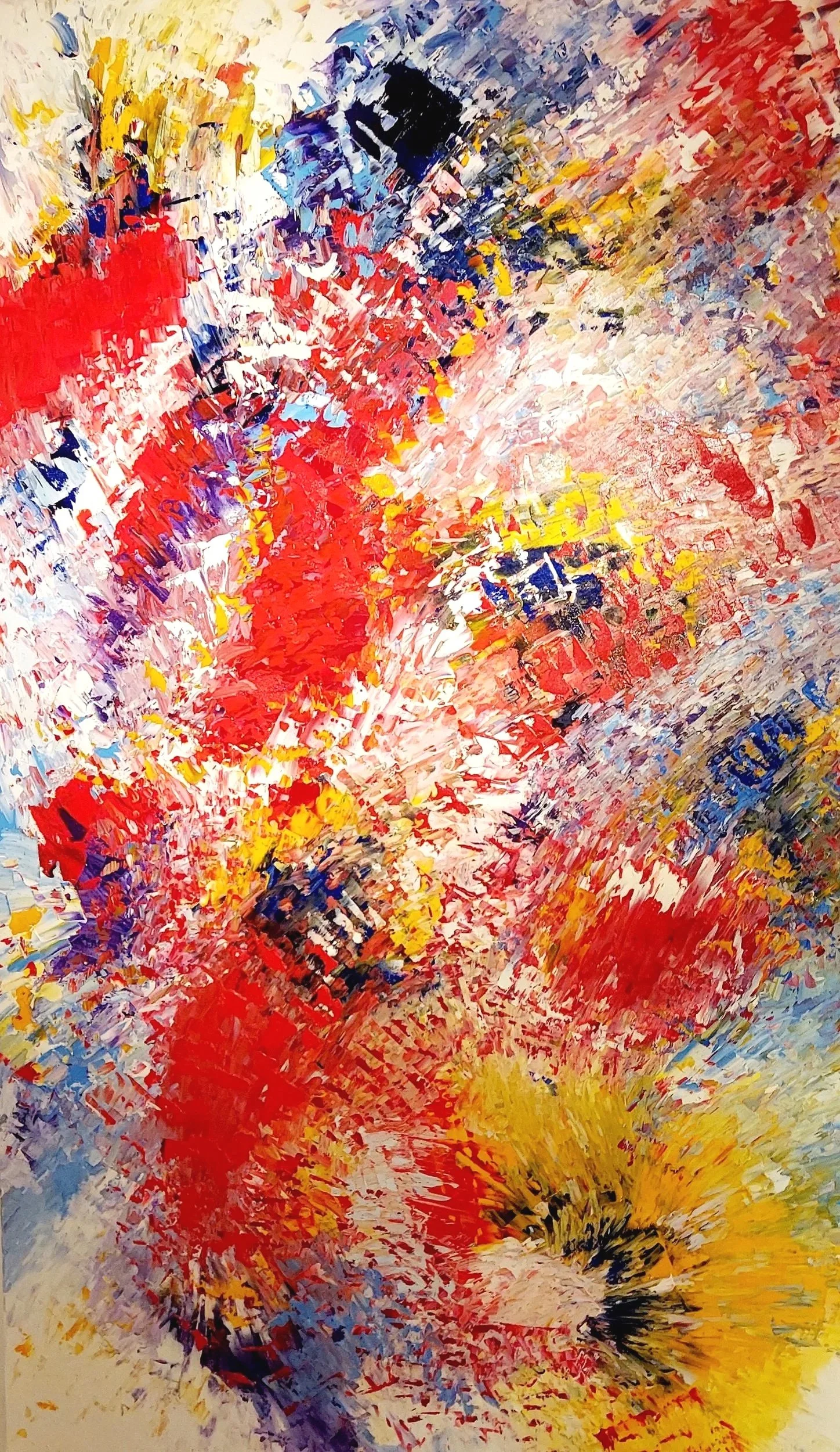My creative process is deeply intuitive, I often begin with spontaneous brushstrokes that reflect my immediate feelings, gradually layering colors and shapes to build a complex visual narrative.
